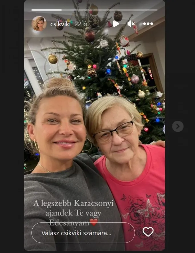 Szerencsére mostanra sikerült stabilizálni az állapotát és már sokkal jobban van. Viki egy közös fotót is megosztott róluk, ahogy a karácsonyfa előtt állnak és nagyon hálás érte, hogy együtt tölthetik az ünnepeket.