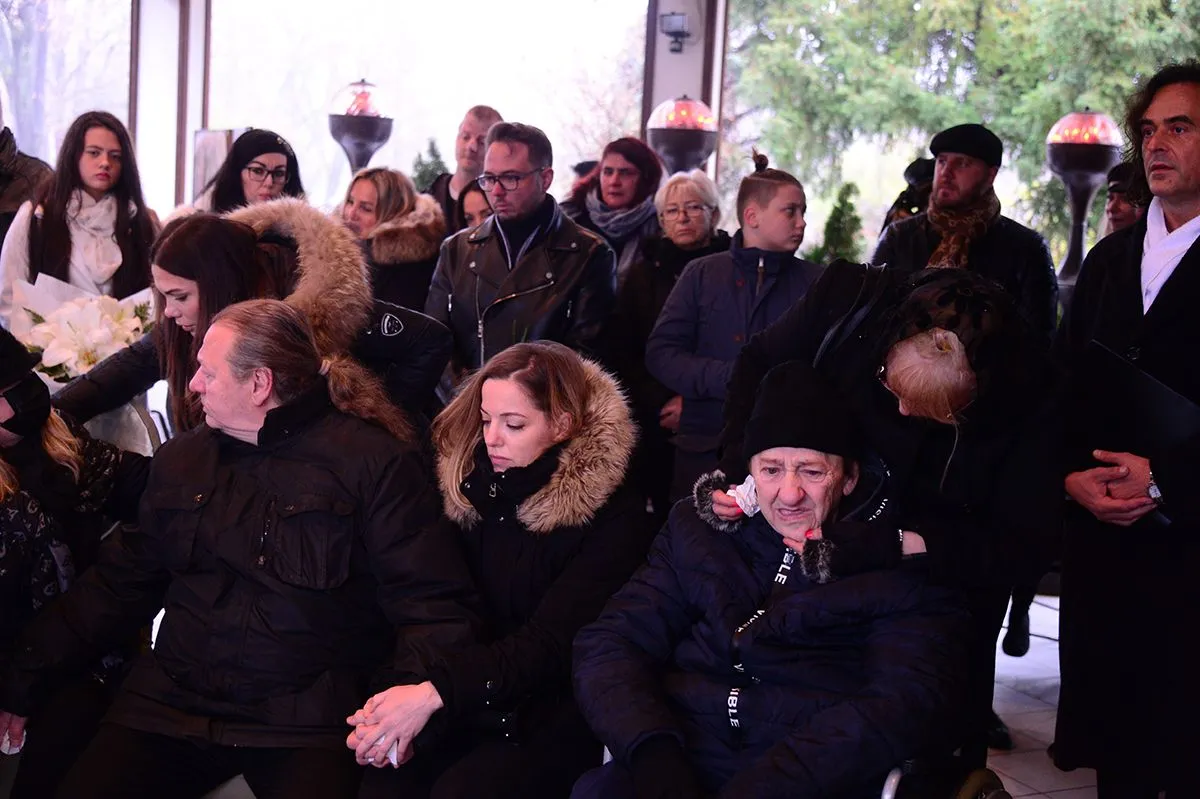 A ravatalozóban szinte tapintható a gyász és a szeretet. Az első sorban Anna néni gyermekei, Jimmy testvérei foglalnak helyet: a szélen, kerekes székben a sztrókon átesett György, valamint Árpy.