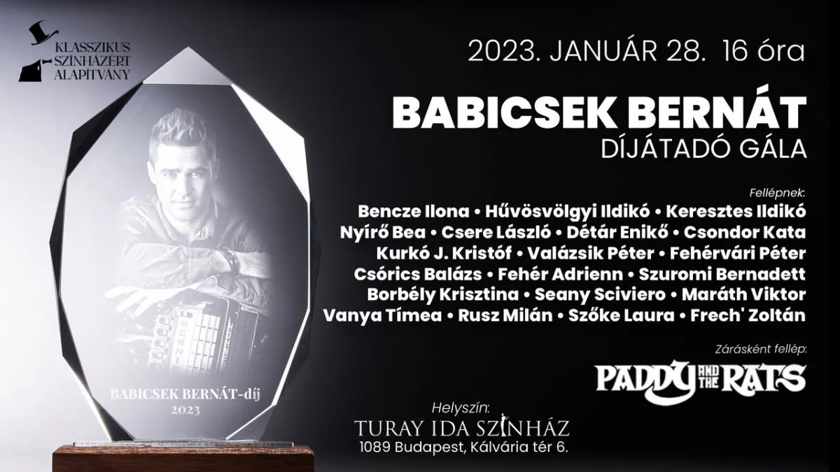 2023. január 28-án ismert művészek, színész kollégák, és a Paddy and the Rats együttes fellépésével kerül megrendezésre az az emlékest, melynek keretében első alkalommal kerül sor a Babicsek Bernát-díj átadására a Turay Ida Színházban. A díjat, olyan 41 év alatti fiatal, zenész-színész kaphatja, akiről a közönség úgy vélekedik, hogy tehetségével, személyiségével, önzetlen segítőkészségével, szerethető egyéniségével, a nemes célok melletti kiállásával belopta magát a szívekbe.