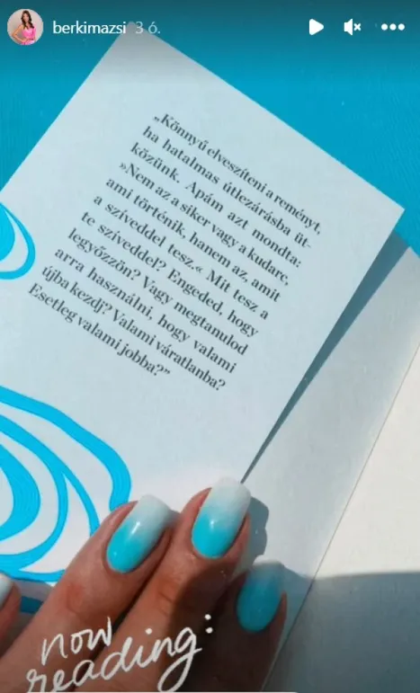 Berki Mazsi megérkezett az újabb nyaralására, ahol motivációs könyvet olvasgat, ami arról szól, hogy mihez kezdjen az ember, hogy ne veszítse el a reményt.