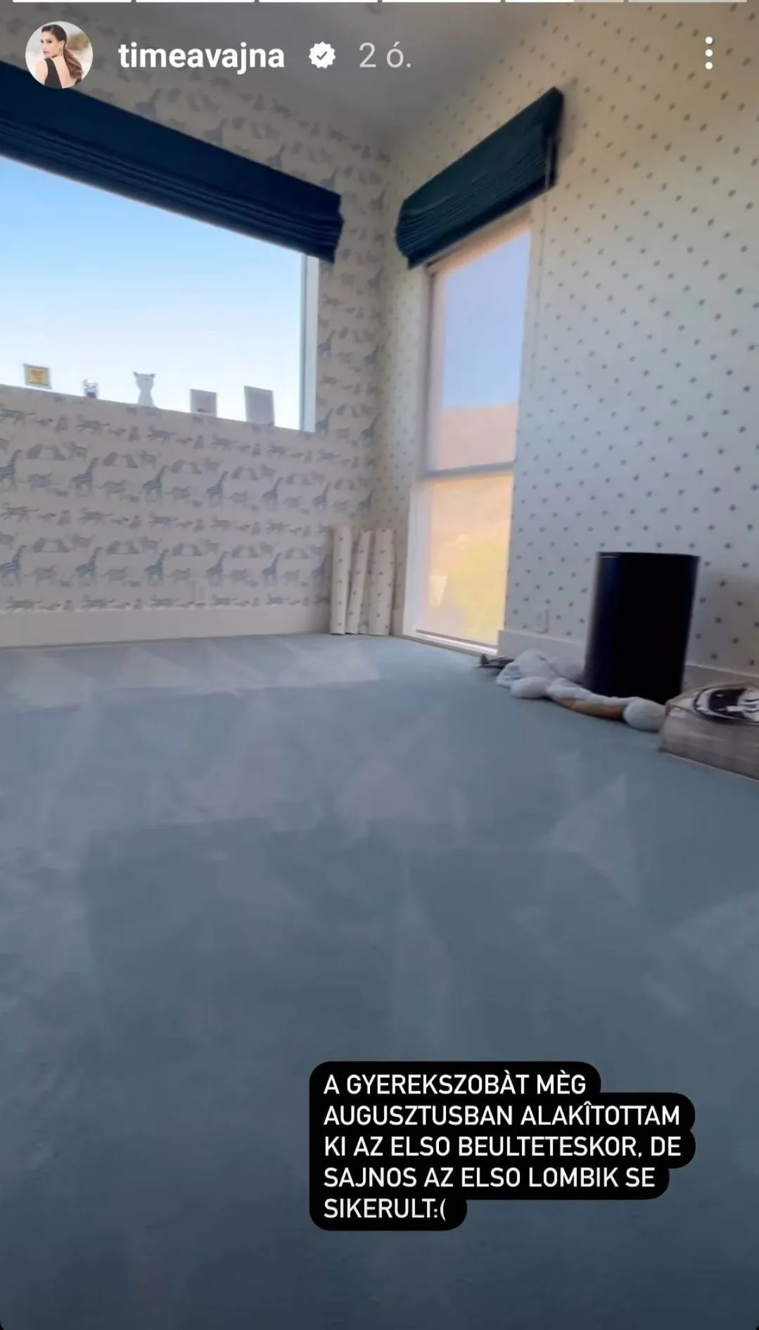 Egyik legfrissebb sztorijában azt az ízlésesen berendezett babaszobát is megmutatta, ahova már tavaly augusztusban várta volna a kis jövevényt vőlegényével, Zoltánnal. Ám mint az kiderült, az akkor történő lombikprogram sem járt sikerrel.