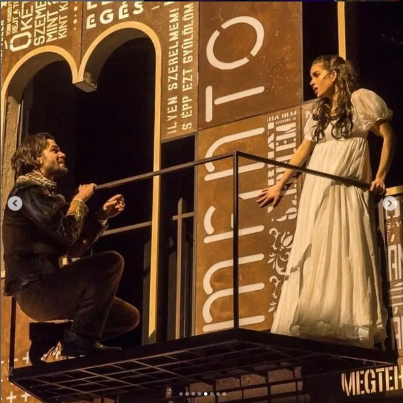 „Partnerem, Herczegh Péter egy korábbi jelenetben leugrik Júlia erkélyéről, ami nagyjából három méter magasan van. A nász még magasabban zajlik, nem is tudom pontosan, hány méteren lehetünk; szerencsére nem vagyok tériszonyos. Természetesen alaposan kidolgoztunk minden mozdulatot, azt is, amikor Rómeó egy kézzel tartja meg Júliát. Vigyáznunk kell magunkra, vigyáznunk kell egymásra, de Péternek megvan a sportos előélete, korábban vívott” – mesélte Júlia tavaly júliusban, az Instagramon pedig tavaly több olyan fotót is közzétett, amin a szóban forgó erkélyen látható.