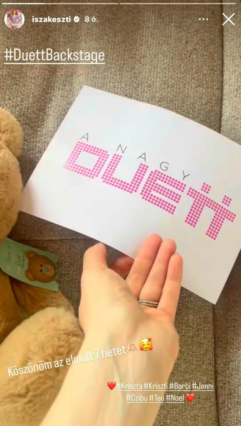 A Nagy Duett nézői meglepve tapasztalhatták, hogy Iszak Eszter helyét Lissák Laura vette át. Nem sokkal később Iszak Eszti Instagramon búcsúzott...