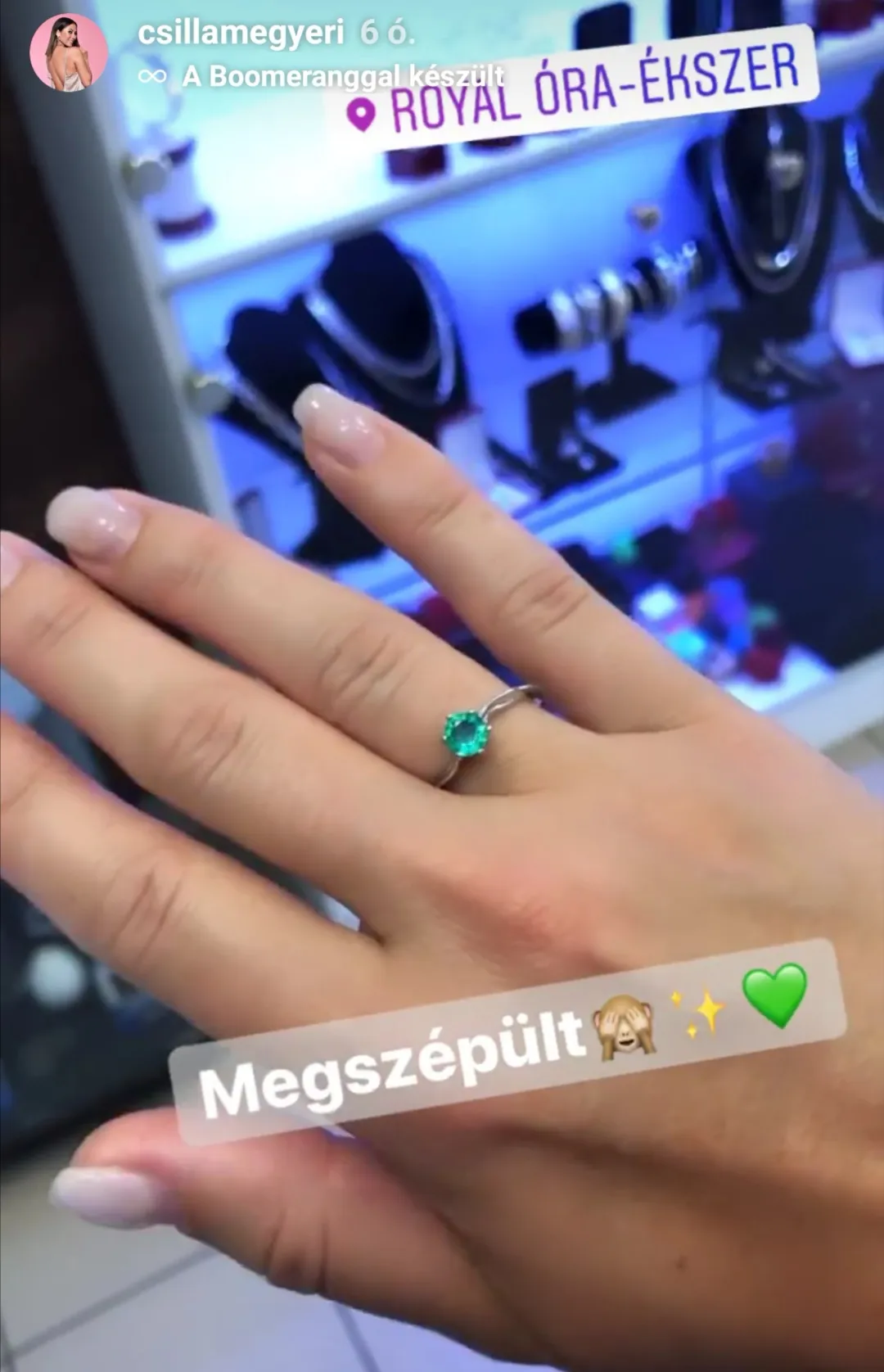 „Kicsit összevesztünk Zsoltival körülbelül két-három héttel ezelőtt, és hozzávágtam a gyűrűt. Ő most azt várja, hogy kérjem vissza tőle, de én büszke vagyok” – mondta az egyik reggeli műsorban Csilla. Úgy tűnik azonban, hogy a mosolyszünet nem tartott sokáig, ugyanis a műsorvezető ujján ismét ott csillog a gyűrű. Erről egy fotót is közzétett az Instagram-oldalán.