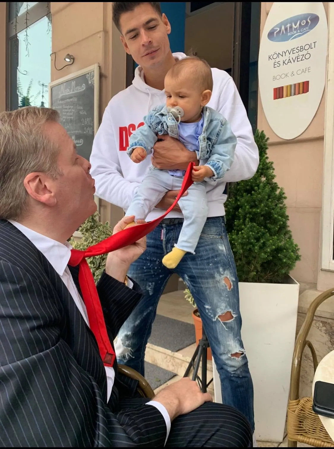 Ehhez az kellett, hogy a Tisztelet Társaságának elnökét egy házaspár felkérje keresztapának. Andor a Ripost-nak újságolta el az örömhírt, sőt, egy bájos képet is küldött, amin a keresztlánya, Valéria épp a nyakkendőjével játszik.