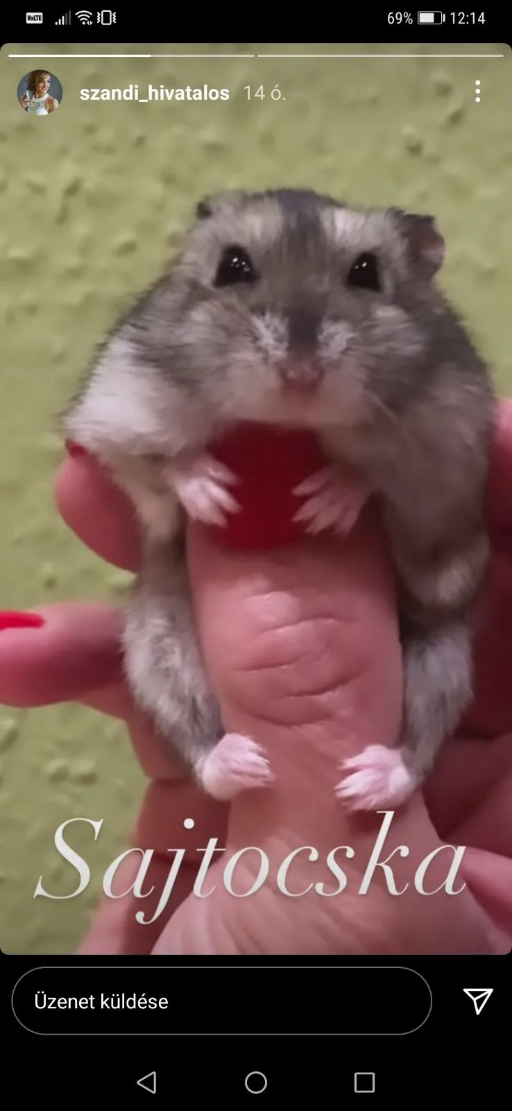 Rendkívül aranyos képet osztott meg az Instagram-oldalán Szandi! Az énekesnő megmutatta a néhány hónapja vásárolt törpehörcsögét, Sajtocskát. Az állat olyan pici, hogy elfér Szandi kezében, és láthatóan nagyon élvezi a gazdája kényeztetését.