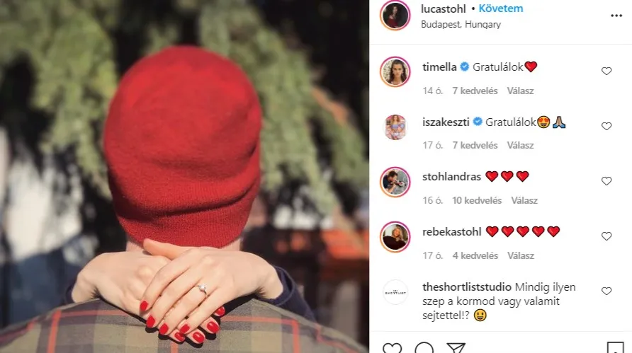 Óriási örömhírt jelentett be a minap Stohl András legidősebb lánya. A 28 éves Stohl Lucát hét év után eljegyezte a párja, akit mindig csak B-ként emleget a nyilvánosság előtt. Ez azt jelenti, hogy hamarosan újra esküvőre készül a Stohl család.