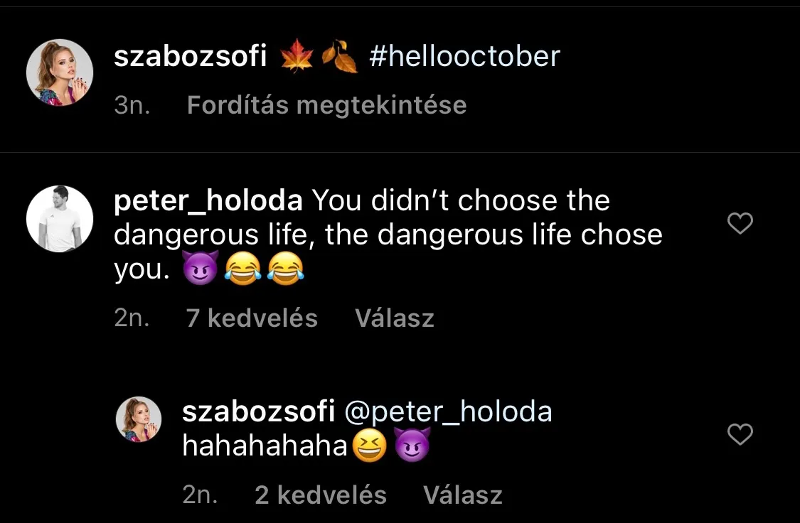 „Nem te választottad a gengszter életet, a gengszter élet választott téged” – írta angolul Holoda a tévés egyik posztjához, de nem is a szöveg tartalma a lényeges vagy a meglepő, hanem az, hogy ismerik egymást. Zsófi ugyanis nem igazán mozgott korábban úszó körökben.