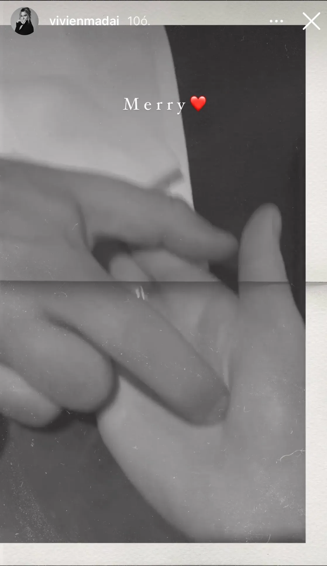 Egy 24 óráig elérhető instagramos sztorijába tette ki karácsonykor azt a rövidke felvételt, amin egy férfi kezét simogatja, és csupán annyit fűzött hozzá, hogy merry, azaz boldog, áldott.