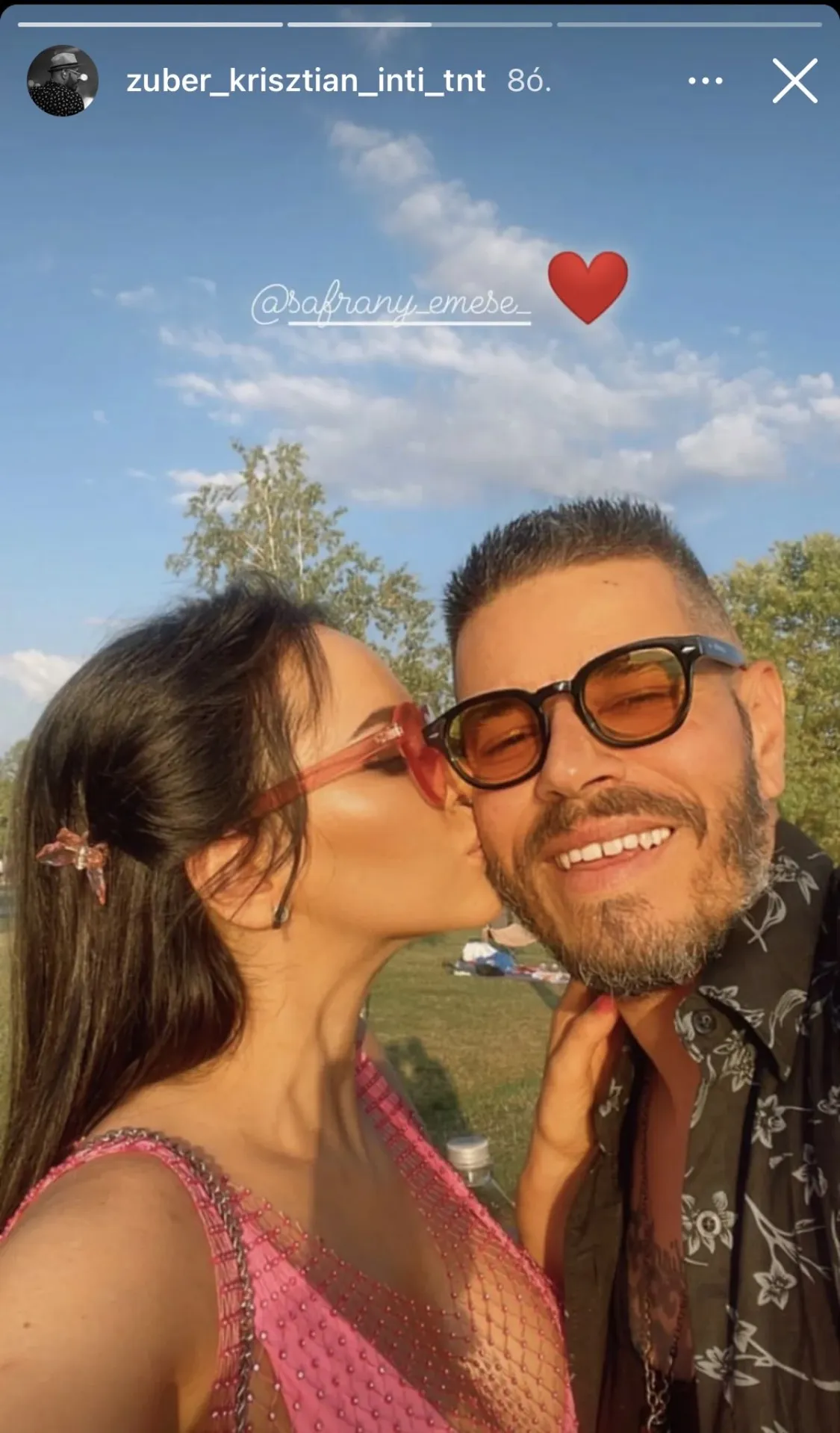 A felvételen Emese forró csókot nyom kedvese arcára, Inti pedig láthatóan nagyon örül ennek.