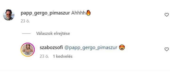 Nehéz azonban ellenállni a férfiaknak, hiszen Zsófi szexibbnél szexibb fotókkal pakolja tele az Instagram-oldalát. Legutóbb például több, bikinis felvételt is megosztott, ami nem meglepő módon felrobbantotta az internetet, s még az egyik kollégájának is megakadt rajta a szeme – szúrta ki a Bors. Véleményét nem is rejtette véka alá, egy tűz emoji kíséretében a következőt üzente Zsófinak: „Ahhh.”