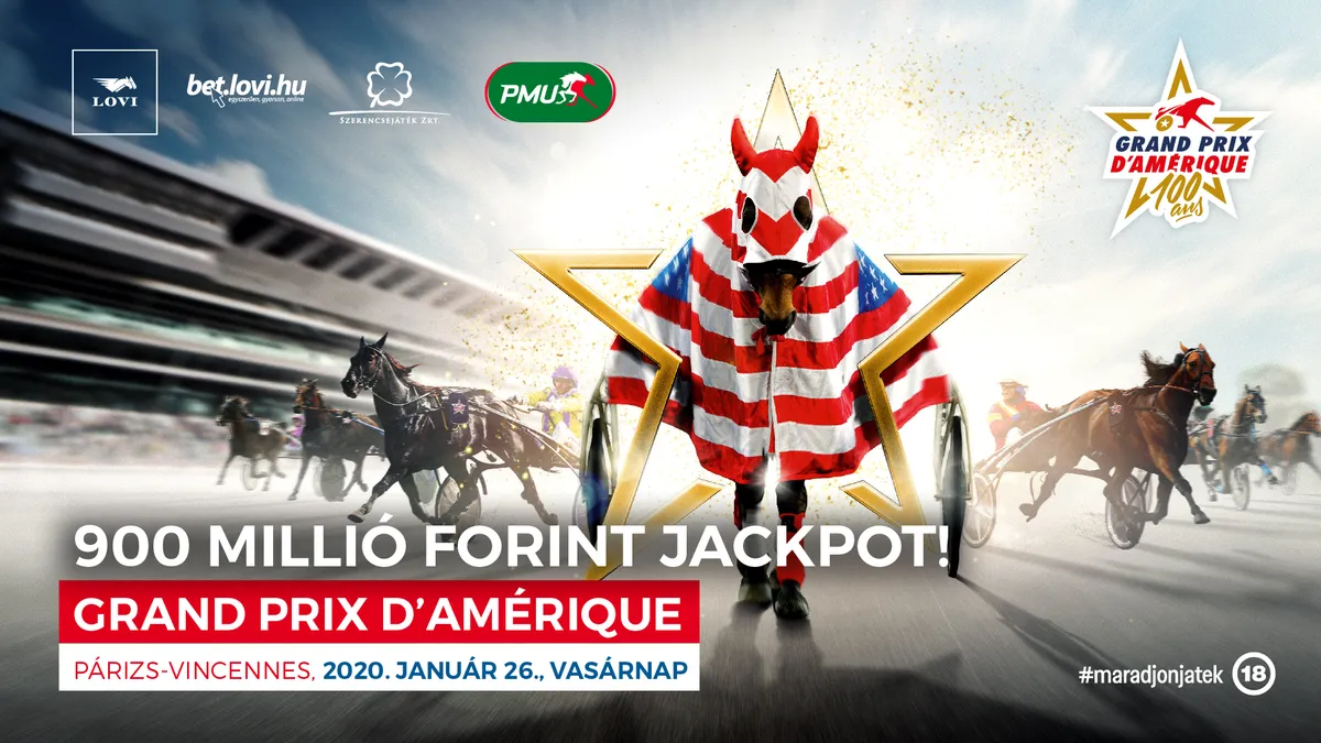 Január 26-án, vasárnap délután a világ legnagyobb ügetőversenye, a 100. születésnapját ünneplő Grand Prix d’Amerique lesz a Kincsem+ futam Vincennesben. A világhírű esemény klasszis lovakat, kiváló versenyt, hatalmas küzdelmet, sok izgalmat és igazán komoly, 900 millió forintos jackpotot kínál, amelyért most különösen érdemes Kincsem+ TUTI fogadást vásárolni.
