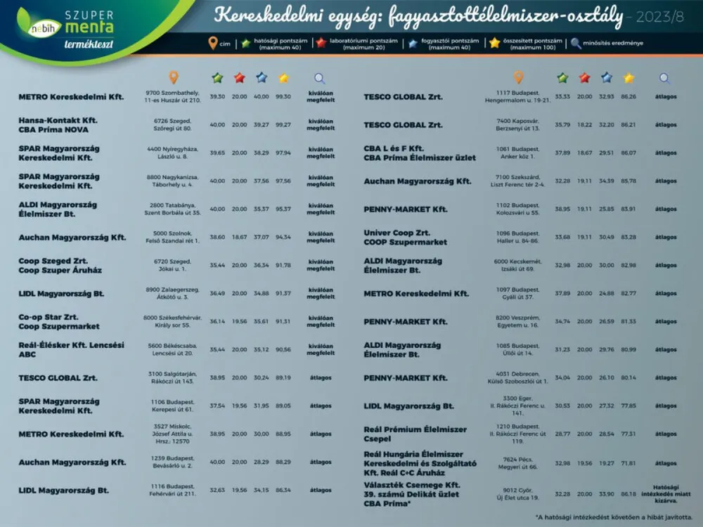 A Szupermenta programban ezúttal különböző üzletek fagyasztottélelmiszer-részlegeit ellenőrizték a hatóság szakemberei. Országszerte 30 boltban jártak - mutatjuk, melyek végeztek az élen!