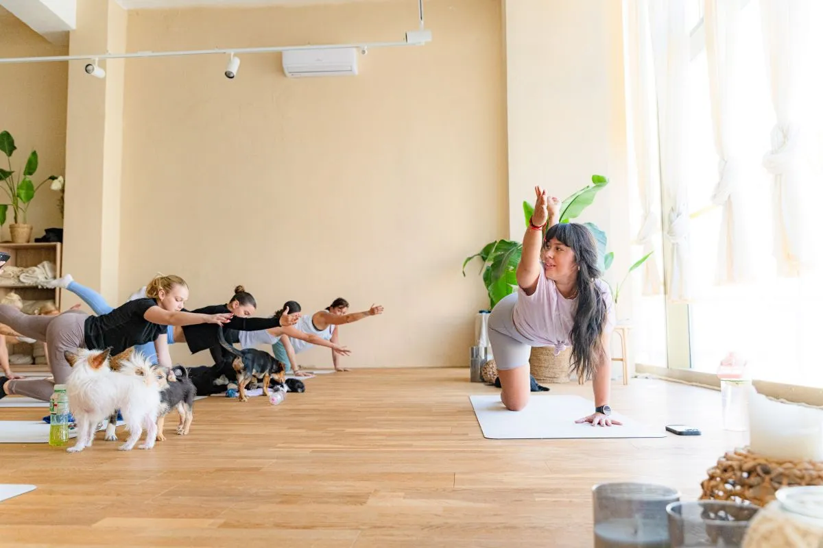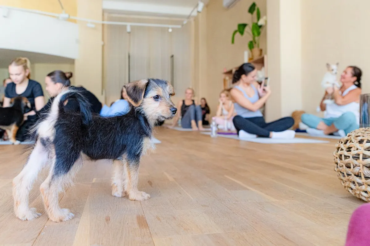 A budapesti, belvárosi jógastúdió hetente háromszor nem csak jógázókkal, hanem eszméletlenül aranyos négylábúakkal is megtelik. Talán első hallásra felmerül a kérdés, hogy mi keresnivalójuk van itt nekik?! Aki egyszer eljön és megtapasztalja, hogy milyen lelket simogató élmény, amikor pár hónapos kölyökkutyák hada rohangál körülöttünk, sétál rajtunk, beleszagol a hajunkba vagy éppen megnyalogatja a nyakunkat, az biztosan megérti. Vivien mellett, az aktuális főszereplők: Mona, Vekni, Tócsni, Csusza, Manka, Shenzi és egy fekete palotapincsi, Cuki, akinek mindig kilátszódik az egyik szemfoga.