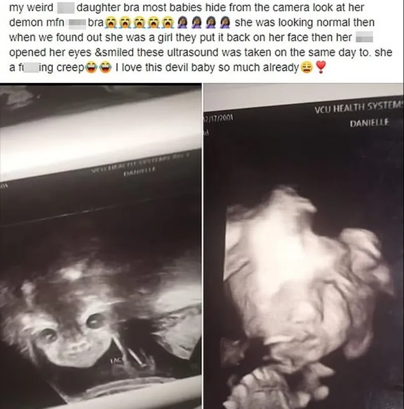 Sokkos állapotban, remegő lábakkal támolygott ki a vizsgálóból a mindössze 17 éves Iyanna Carrington, aki első gyermekét várja. Nem véletlenül, a Virginia államban élő kismama magzata ugyanis úgy nézett ki a 24. hétben készült ultrahangon, mint egy horrorfilm főszereplője. Mintha a Sátán költözött volna bele az anyaméhbe – írja a Daily Mail.
