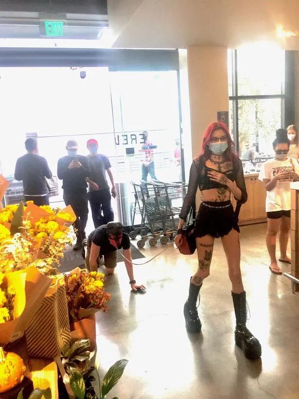 Váratlanul megjelent ugyanis egy platformos csizmába és miniszoknyába bújt domina, mögötte pedig alárendelt szeretője kúszott négykézláb, egy pórázon vezetve – írja a Daily Star.