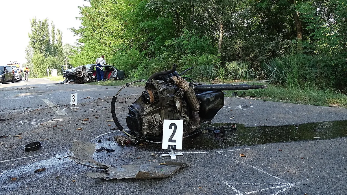 Az ütközés olyan nagy erejű volt, hogy a gépkocsi motorja és egyik kereke is kiszakadt. A baleset körülményeit szakértők vizsgálják tovább. A helyszínelés és a mentés idejére teljes útzár volt érvényben.