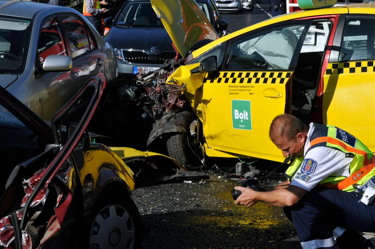 Három autó rohant egymásba, teljesen lezárták az utat a rendőrök.