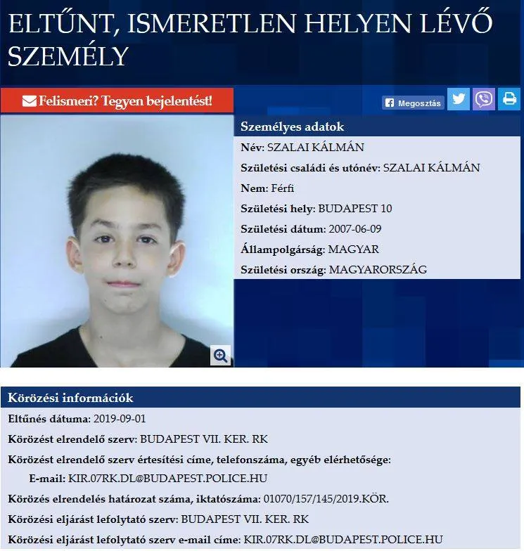 „Kálmánt nevelőintézetből fogadták örökbe három testvérével együtt” – kezdte egy a család szomszédságában élő nő. – „Néhány napja láttam náluk rendőröket, ezután derült ki számomra, hogy a kisfiú eltűnt. Úgy tudom, mostanában problémák voltak Kálmán és a testvére viselkedésével, de nem gondoltam, hogy ekkora a baj.”