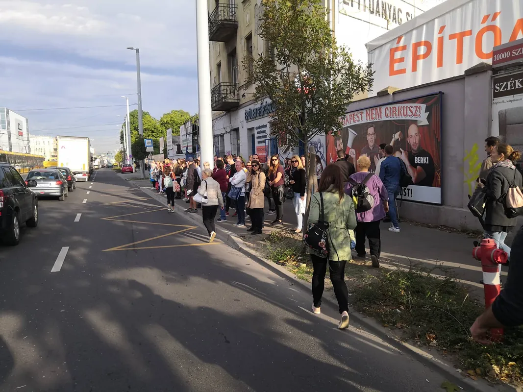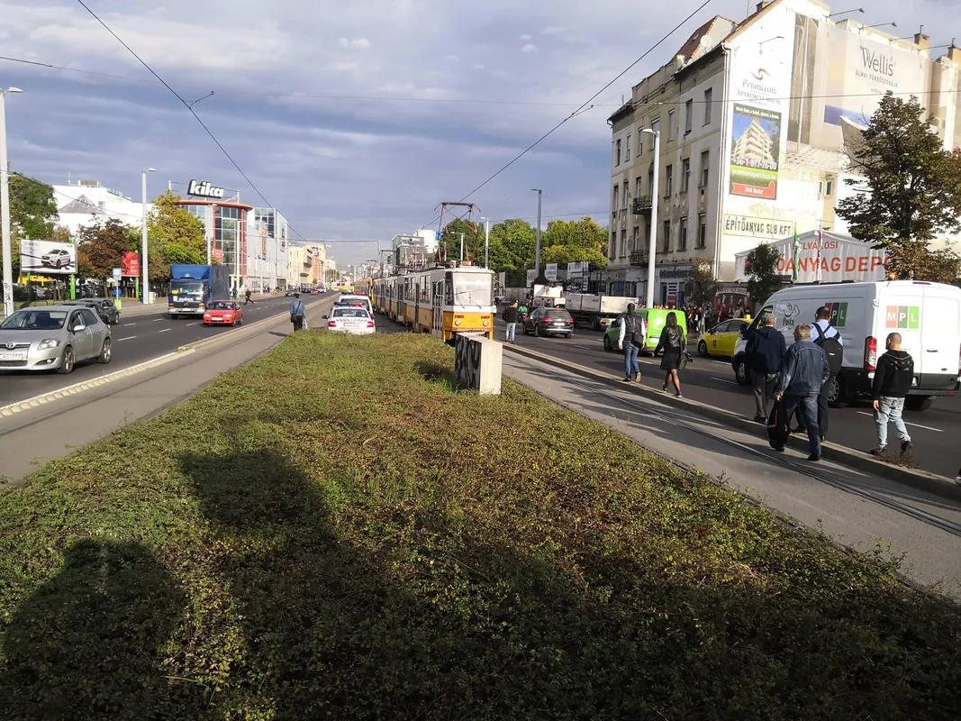 A villamos helyett pótlóbusszal lehet közlekedni, rengetegen várakoznak a megállókban.