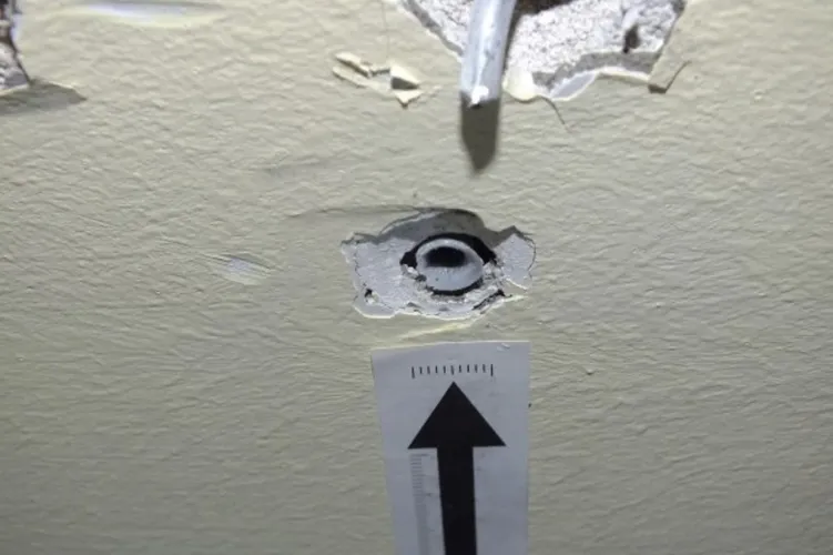 A kivitelezésnél elfogyott az álmennyezet rögzítéséhez szükséges alkatrész és silányabb minőségűvel pótolták.