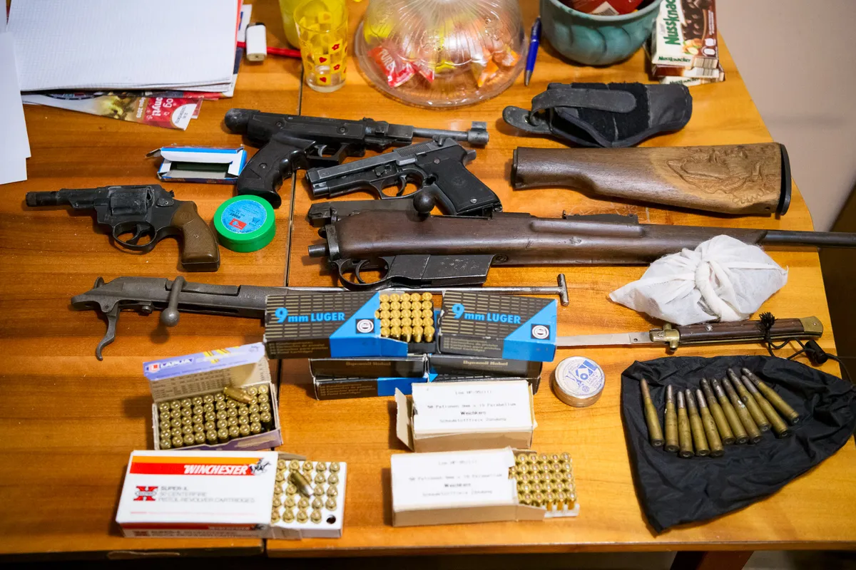 Egy Németországban bankautomatákat robbantó csoportra csaptak le a rendőrök, több mint száz rendőr kutatott át 7 lakást, amikből rengeteg fegyver is előkerült.
