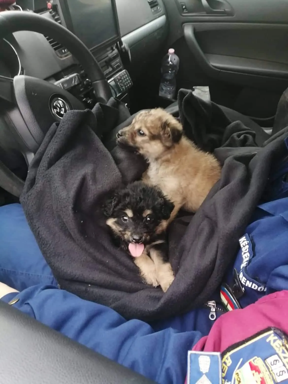 Látták, hogy a kölykök reszketnek, sem az anyjuk, sem a gazdájuk nincs a közelükben, de még csak tanyát sem sejtettek a közelben, hogy a kutyák esetleg onnan kóboroltak volna el. A két szőrgombócot bebugyolálták az autóban lévő pokrócokba, így melegítették fel őket.