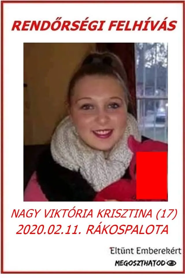 A rendőrség is keresi a Rákospalotáról eltűnt Nagy Viktória Krisztinát, aki február 11-én tűnt el Budapestről.