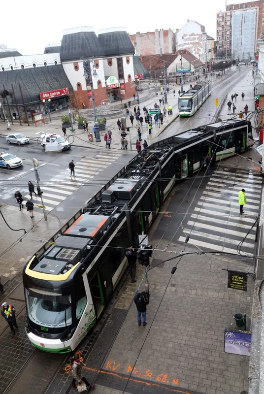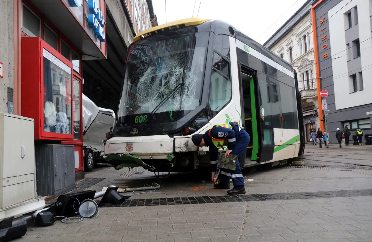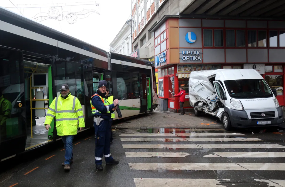 A jármű a Széchenyi és a Corvin utca kereszteződésében összeütközött egy kisteherautóval, majd kisiklott. Az autóban egy utas megsérült – írja az MTI.