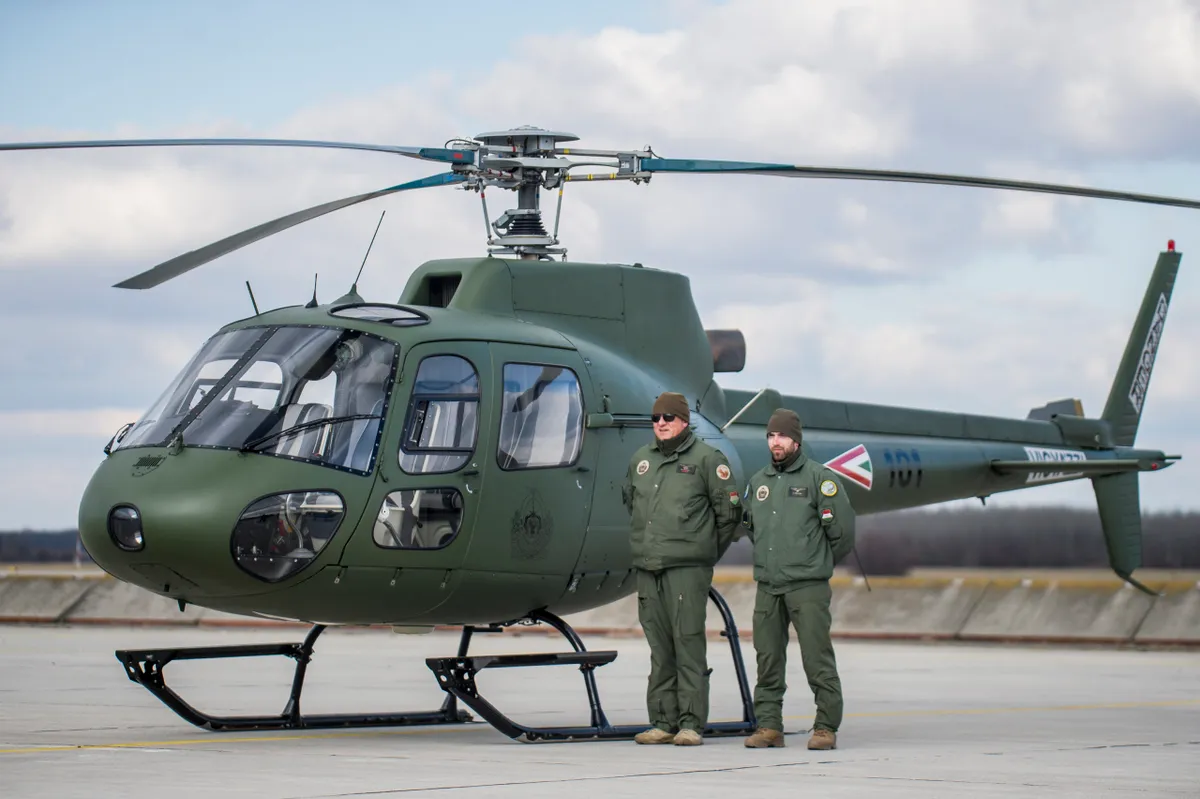 AS-350 típusú helikopter Kecskeméten, a MH 59. Szentgyörgyi Dezsõ Repülõbázisán, ahol kihelyezett ülést tartott az Országgyûlés honvédelmi bizottsága 2020. február 27-én.