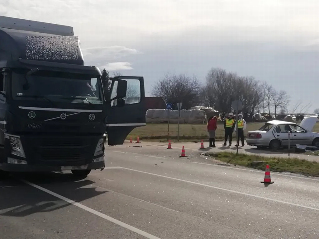 Egy személyautó és egy kamion karambolozott az 55-ös számú főúton.