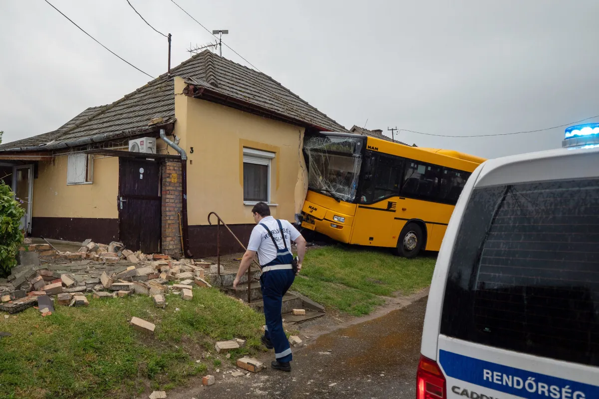 A Volán menetrend szerinti járata lesodródott az úttestről és beszakította a ház falát. A buszon nem sérült meg senki. A házban egy házaspár él a kisgyerekükkel, ők sem sérültek meg, de az épület egy része lakhatatlanná vált.