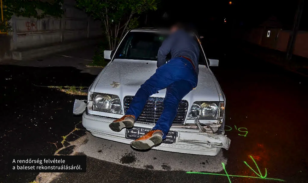 A padkának ütközött autó vezetője kiszállt és odament a balesetet okozó Mercedes sofőrjéhez, aki ekkora már kiszállt az autóból. A hibás sofőr felvette az úttestről a Mercedes rendszámtábláját, ezt követően beszállt az autójába és az előtte álló férfit elütve próbálta a helyszínt elhagyni. A vétlen férfi ekkor a motorháztetőre esett, a vétkes sofőr pedig 55 méteren át vitte magával a motorháztetőn az elütött férfit. Az áldozat végig erősen kapaszkodott, és csak lélekjelenlétének köszönhette, hogy nem történt tragédia, könnyű sérüléseket szenvedett.
