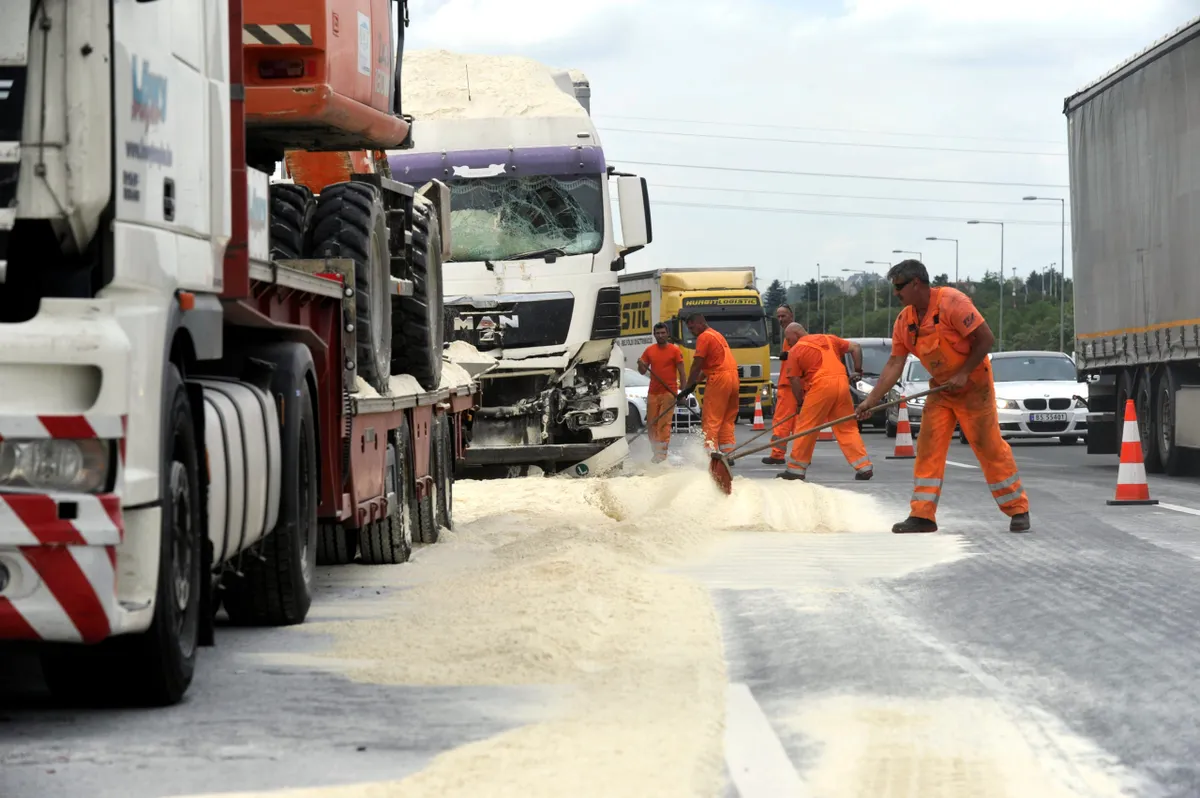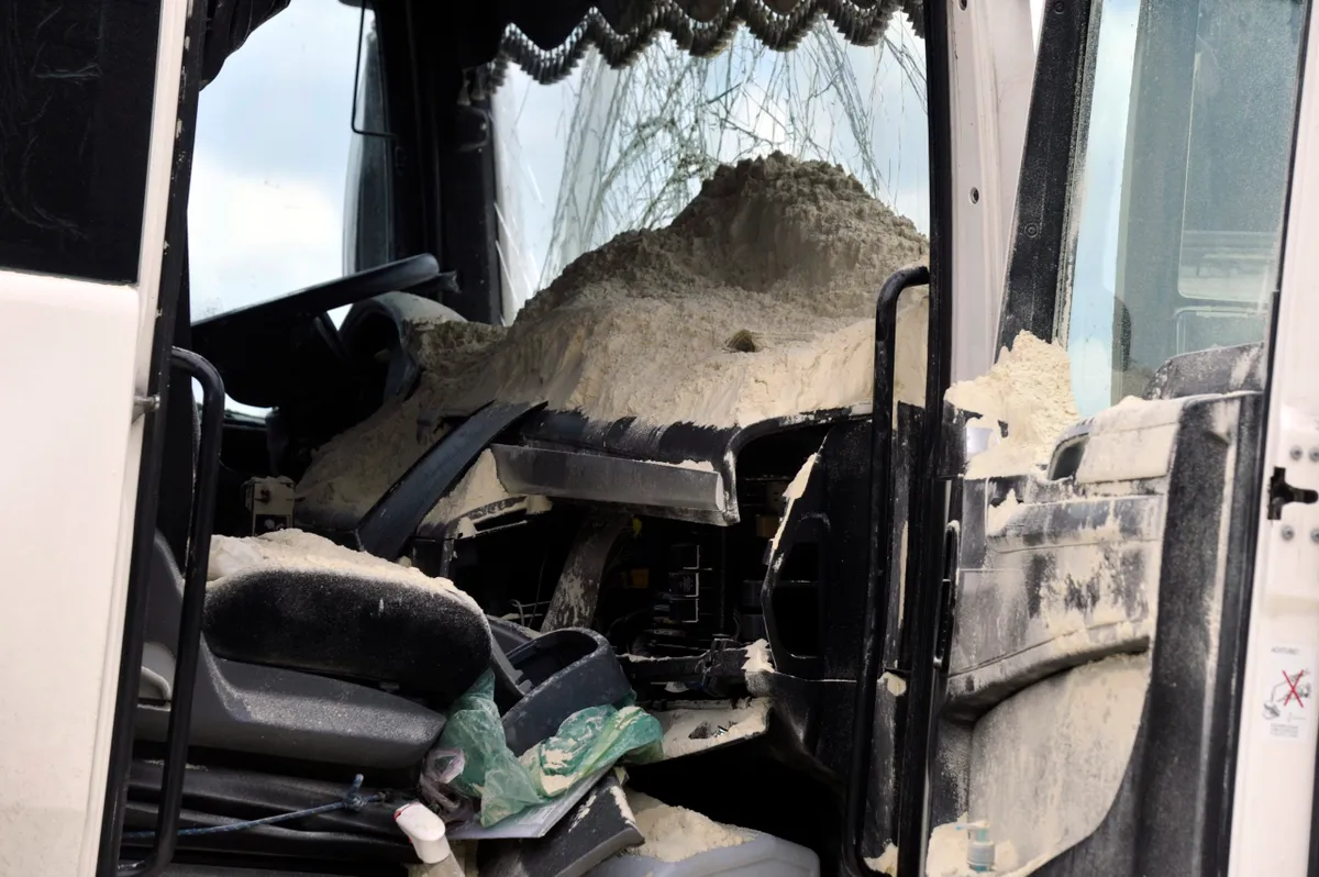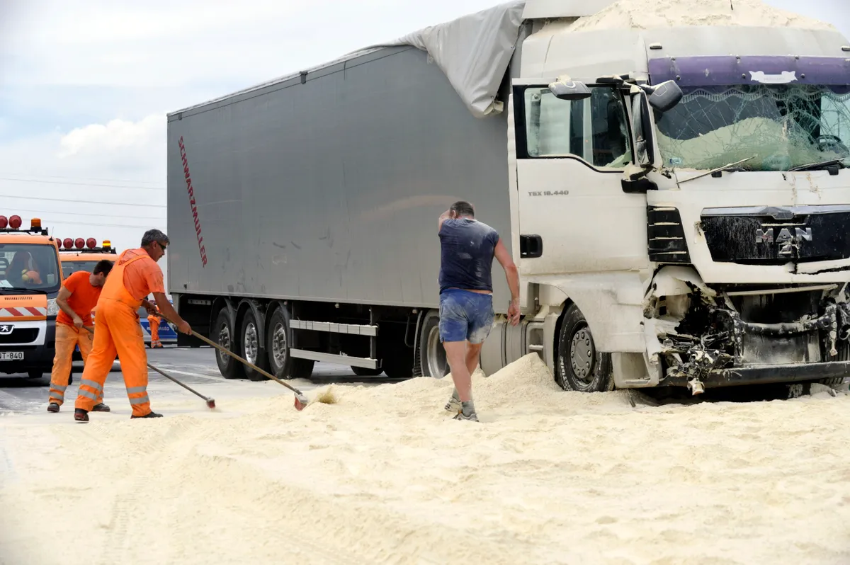 Úgy tudni a kamion rakománya egy hirtelen fékezésnél borult ki az útra és tódult a vezetőfülkébe is. Az autópálya útját azóta teljesen beborítja a liszt, a takarítást a munkások már megkezdték. A forgalom azóta korlátozva haladhat át az érintett területen.