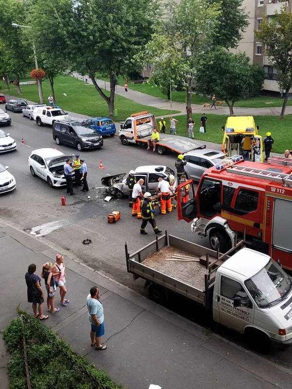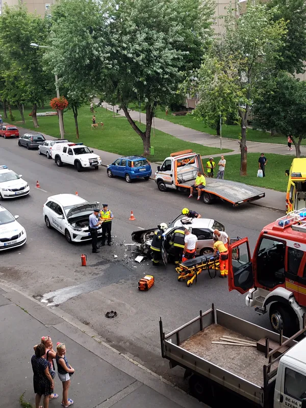 Összeütközött két gépkocsi a XX. kerületben, a Baross utca és a János utca kereszteződésében.