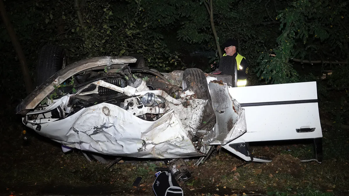 Felismerhetetlenségig roncsolódott az autó, ami letért az útról.