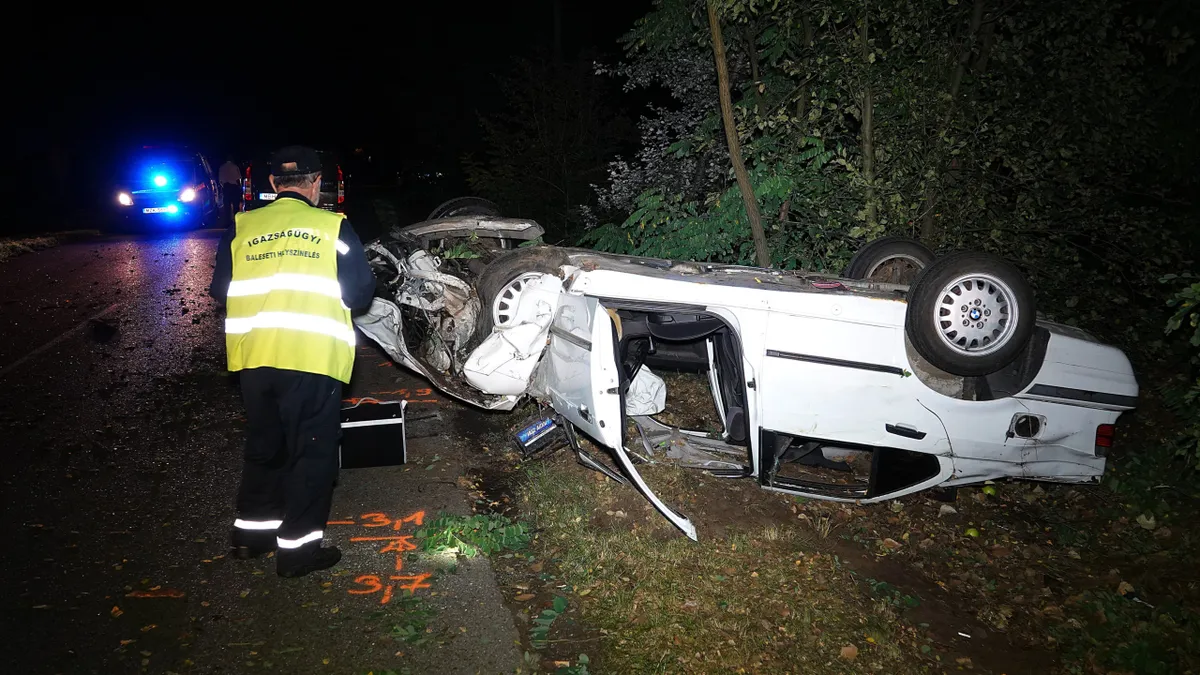 Egy személygépkocsi eddig tisztázatlan körülmények között letért az útról és felborult. Az elsődleges információk szerint az autót vezető férfi kirepült a járműből és a helyszínen életét vesztette.
