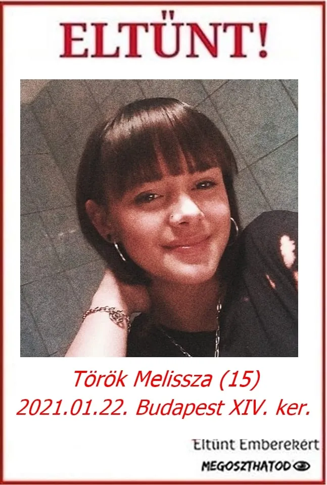 Január 22-én, péntek délelőtt szökött meg otthonról a 15 éves Török Melissza, akit most nagy erőkkel keresnek. A kislány azóta nem elérhető, és életjelet sem ad magáról. Kétségbeesett édesanyja, aki már a rendőrségen is tett bejelentést, most a netezők segítségét kéri, hogy kislányát megtalálja.
