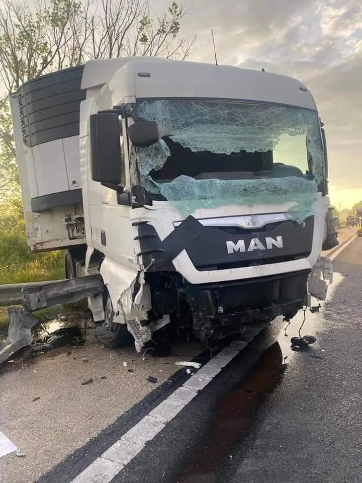 A rendőrök éppen befejezték egy baleset helyszínelését az M1-es autópályán, amikor egy kamion letarolta őket és még több másik autót is. Összesen 7 autó ütközött össze. Az autópályát lezárták.