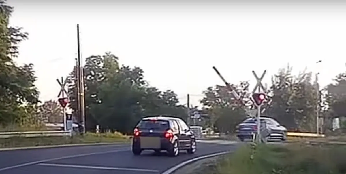 Csupán egy hajszál választotta el az autóst, hogy a sorompók között elgázolja egy vonat.