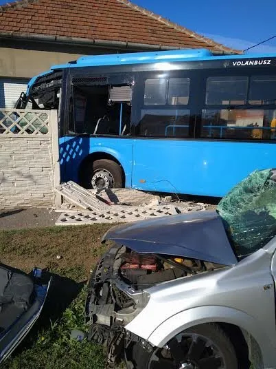 A baleset szombat reggel történt Gyálon. Egy személyautó és egy autóbusz ütközött össze, utóbbi egy ház falának csapódott.