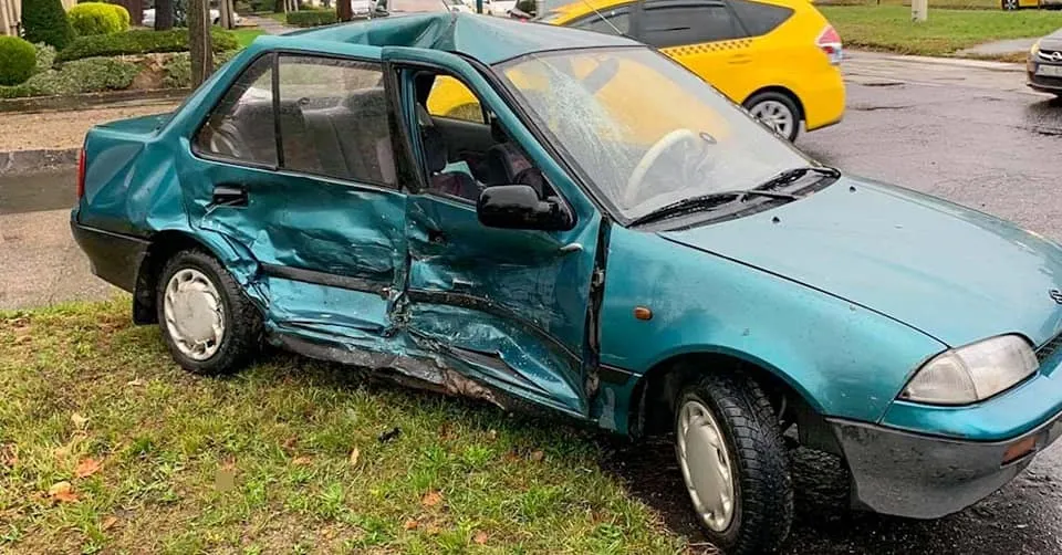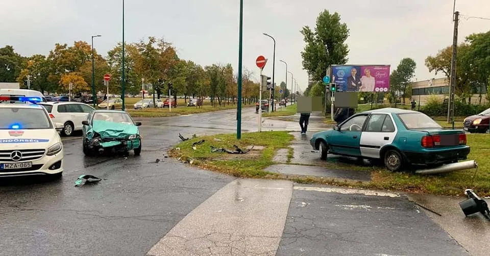 Két Suzukis karambolozott, de az ütközés erejétől mindkét jármű csúnyán összetört. Sőt az egyik autós, még a közeli jelzőlámpát is kidöntötte.