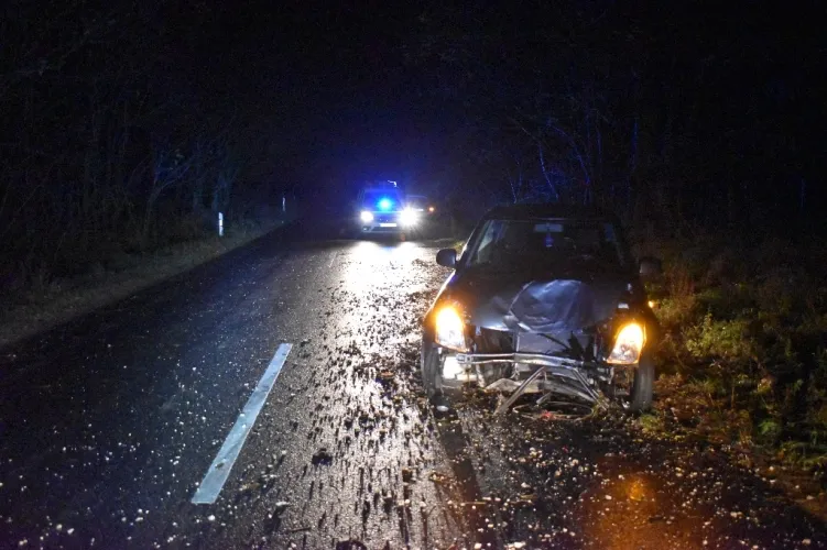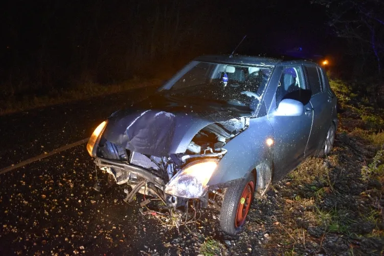 Haladása során – mivel járműve sebességét nem az út- és időjárási viszonyoknak megfelelően választotta meg – a nedves úton megcsúszott és áttért a menetiránya szerinti bal oldalra, ahonnét tovább sodródott, és az úttest mellett lévő optikai terelő oszlopnak ütközött, majd egy vízelvezető árokban egy fának csapódott.