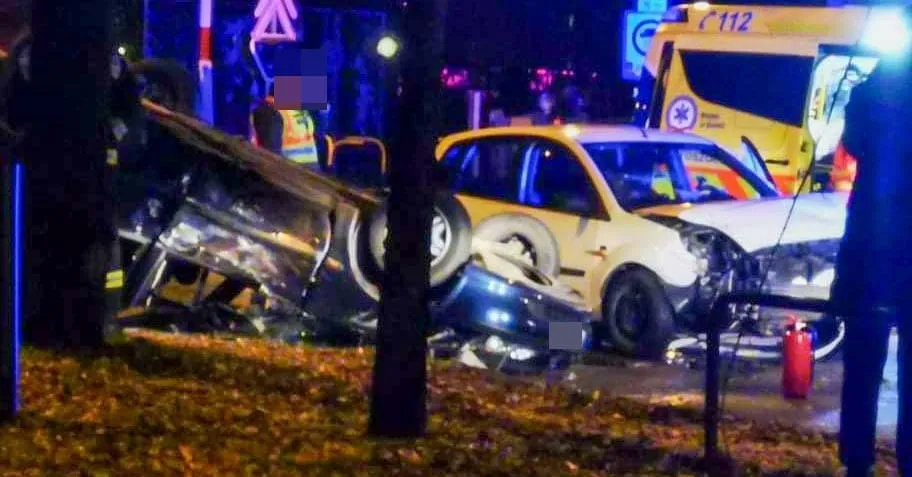 Összeütközött három személyautó, egyikük a tetejére borult Budapest XVIII. kerületében, az Ady Endre út és a Hofher Albert utca kereszteződésében.