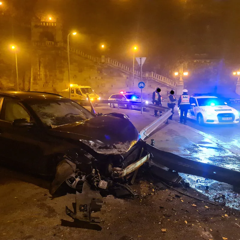 Hajnalban Budapesten, az Erzsébet híd budai hídfőjénél egy Audi sofőrje nem tudta bevenni a kanyart, csúnya vége lett a fordulónak.