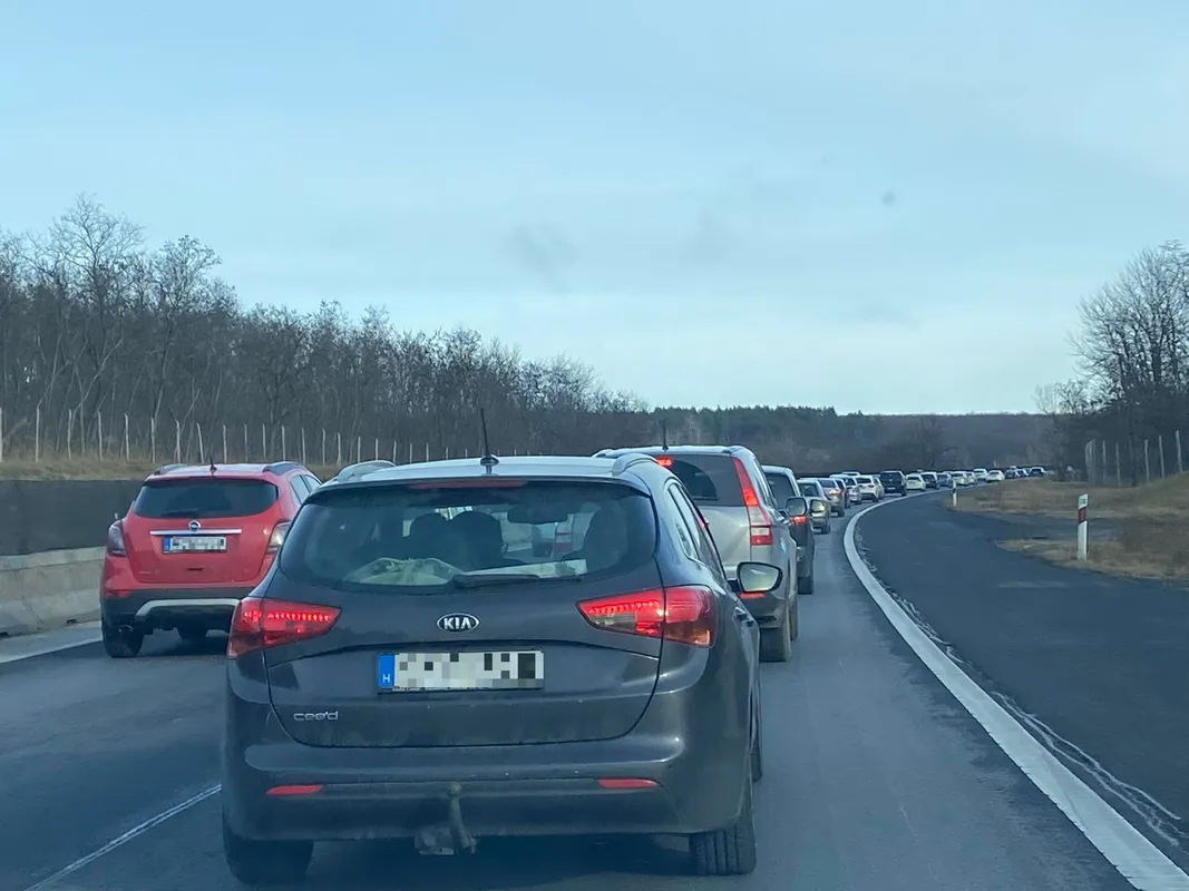 Árokba hajtott egy autós az M3-as autópályán. Nagyjából öt kilométer hosszú lehet a kocsisor.