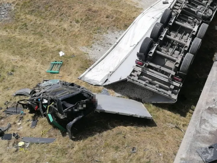 Hétfőn, a kora délutáni órákban történt halálos baleset Nagyszombaton: személyautóval ütközött frontálisan a kamion, mindkét jármű lezuhant a felüljáróról.