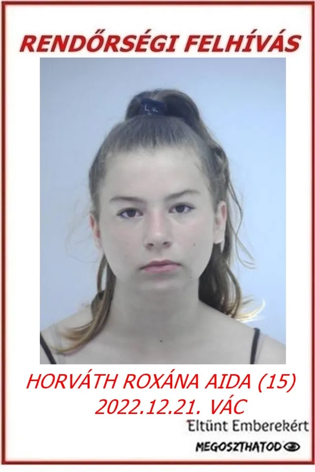 Horváth Roxána Aidát utoljára december 21-én látták. Azóta ismeretlen helyen tartózkodik és életjelet sem adott magáról. A rendőrság felhívásban kéri a lakosságot, hogy aki látta, vagy információval rendelkezik az eltűnése körülményeiről, jelentkezzen.