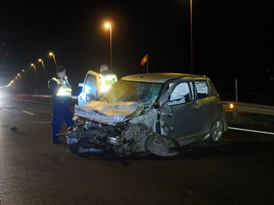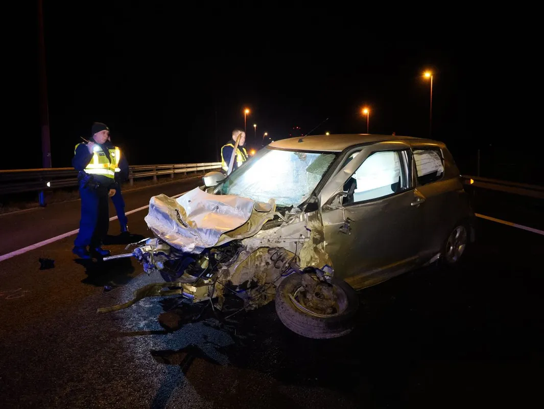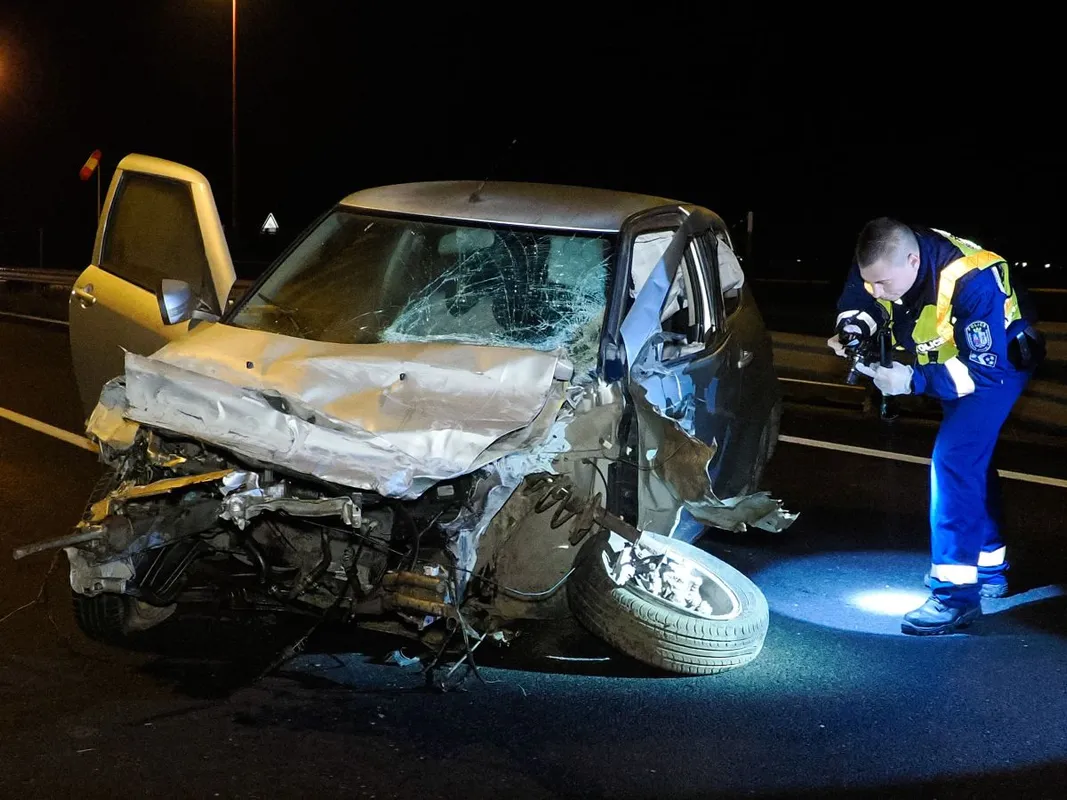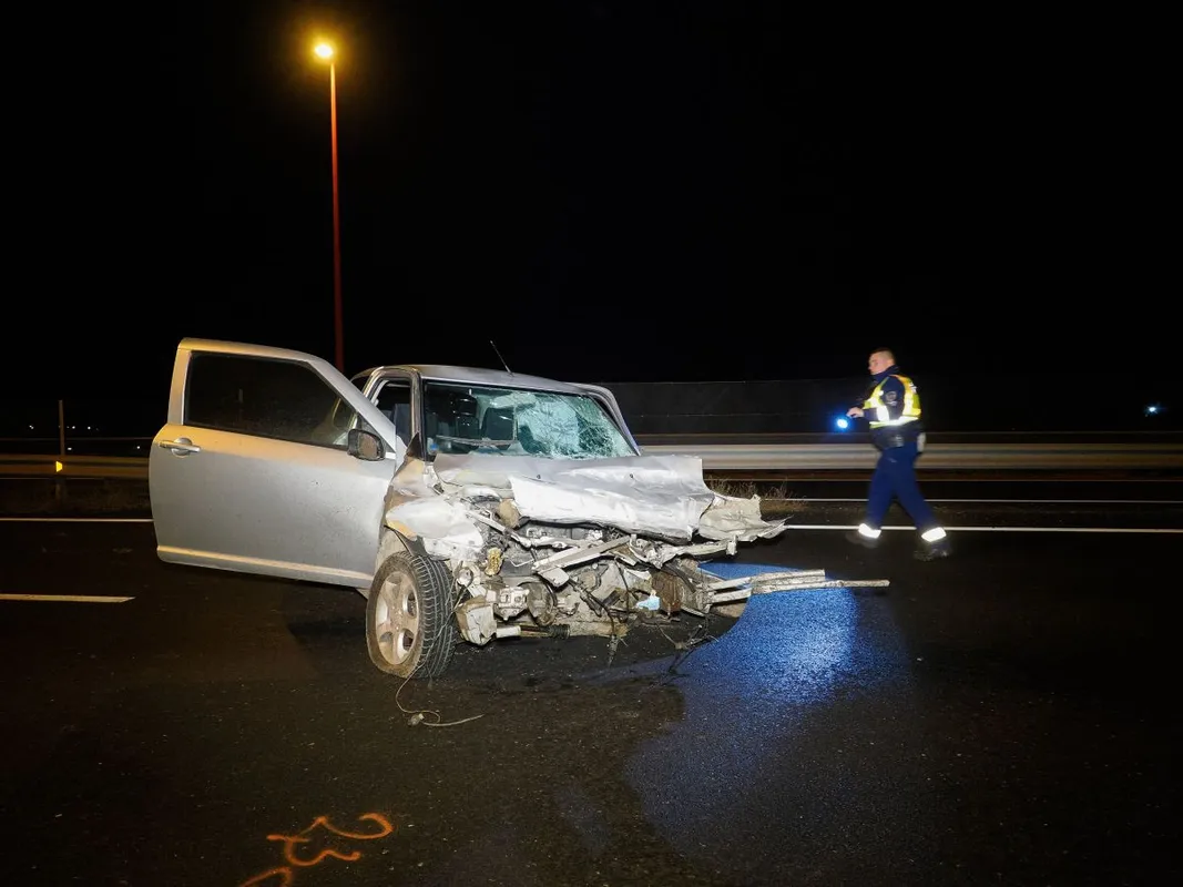 Teljesen összeroncsolódott egy autó az M8-as autópálya 81-es kilométerénél.
