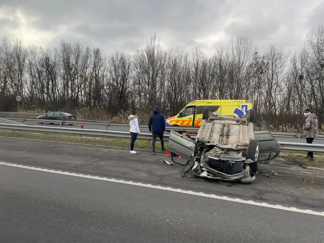 A Ripost egyik olvasója küldte a képeket az M0-s autópályáról, ahol borzalmas baleset történt. A képek tanúbizonysága szerint egy autó a feje tetején állt meg, az egyik kereke ki is szakadt a helyéből.